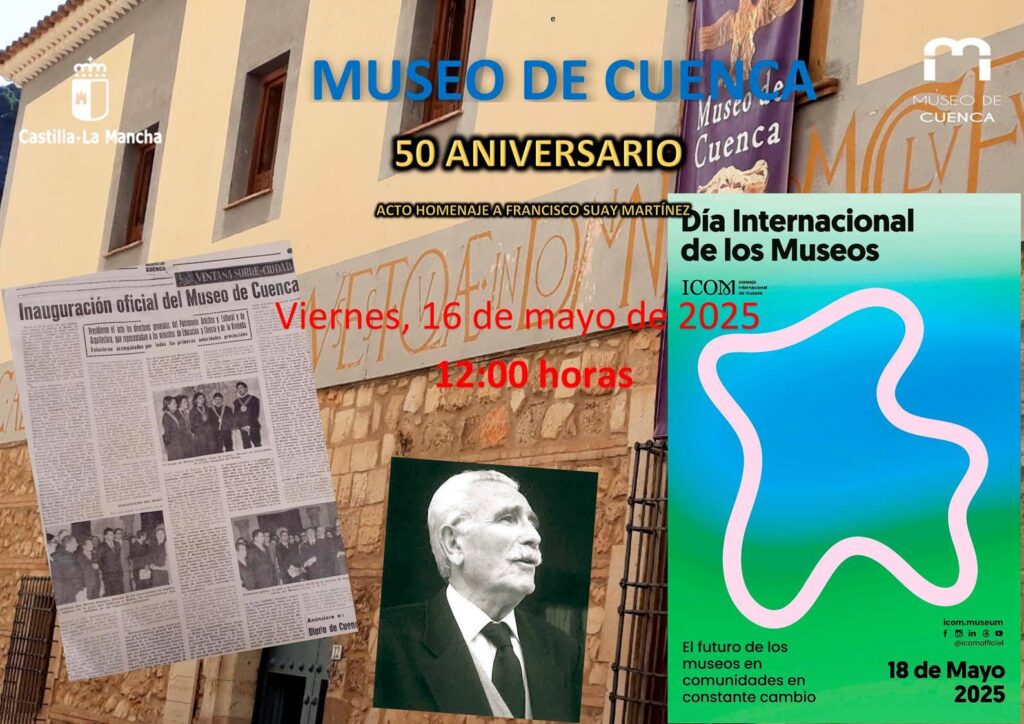 El próximo viernes, 16 de mayo de 2025, a las 12:00 horas, el Museo de Cuenca, ubicado en la calle Obispo Valero, 12, conmemora el 50 aniversario de su inauguración oficial con un acto de homenaje a Francisco Suay Martínez, figura insustituible en el desarrollo y protección del patrimonio arqueológico de la provincia.