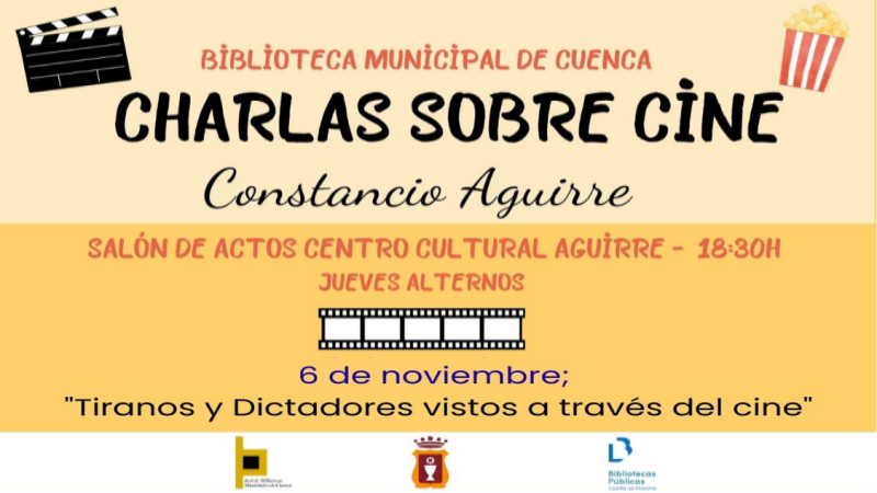 La Biblioteca Municipal de Cuenca, en colaboración con el Cineclub Chaplin, retoma su ciclo de charlas con una sesión dedicada a la representación del poder en el séptimo arte. El investigador Constancio Aguirre analizará títulos como El gran dictador o El triunfo de la voluntad, reflexionando sobre el autoritarismo en la gran pantalla.