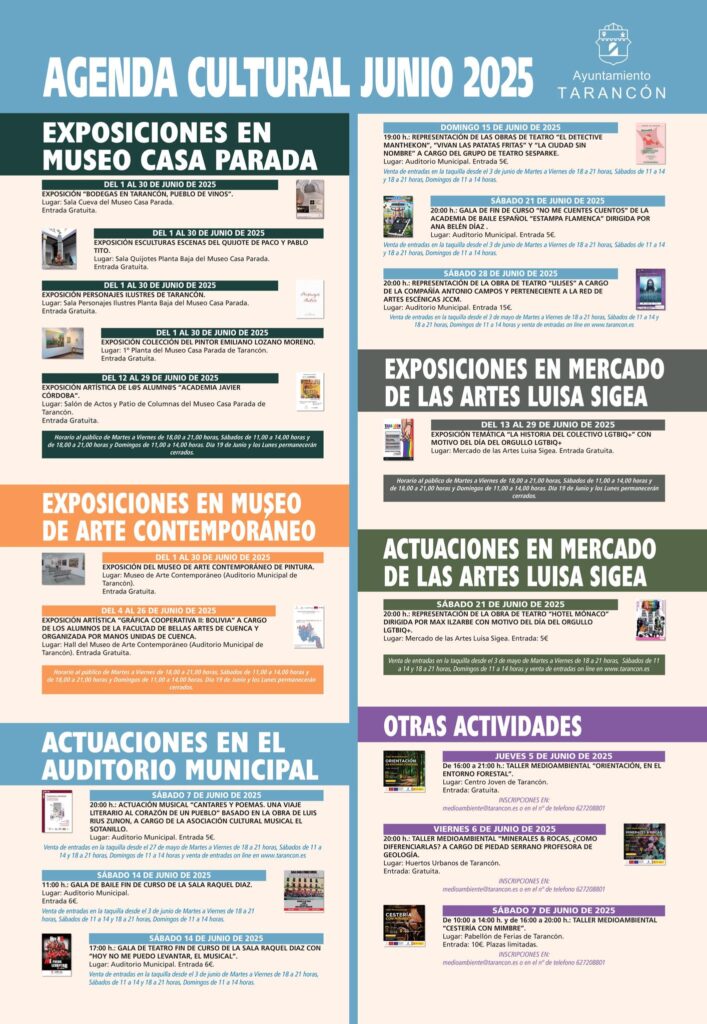 Agenda cultural de Tarancón en junio 2025: arte, teatro, exposiciones y actividades para todos