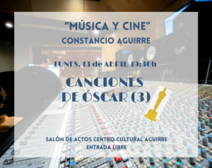 Charla sobre canciones ganadoras del Óscar el 13 de abril en el Centro Cultural Aguirre dentro del ciclo Música y Cine.