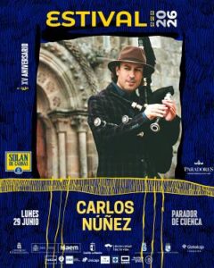 El gaitero internacional Carlos Núñez actúa en Estival Cuenca 2026 con su espectáculo “Celtic Beethoven”, en el Parador de Cuenca. Un concierto único que fusiona música celta y Beethoven, acompañado por Bleuenn Le Friec y María Sánchez.