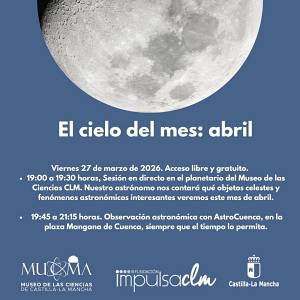 Sesión de planetario y observación astronómica en Cuenca el 27 de marzo en el Museo de las Ciencias. Actividad gratuita para descubrir el cielo de abril.