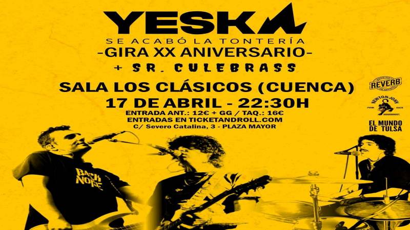 La sala Los Clásicos acoge el 17 de abril a Yeska y Sr. Culebrass, una noche de rock potente en Cuenca. Entradas ya disponibles.