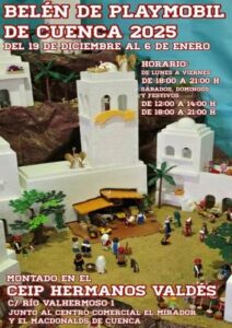 Descubre el Belén de Playmobil de Cuenca 2025 en el CEIP Hermanos Valdés, abierto del 19 de diciembre al 6 de enero con horario ampliado para toda la familia.