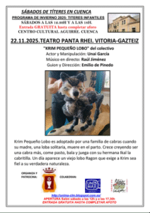 Los Sábados de Títeres llegan al Aguirre con “Krim Pequeño Lobo”, teatro infantil gratuito el 22 de noviembre en Cuenca. Funciones a las 12:30 y 18:00.
