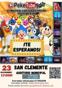 El próximo 23 de noviembre de 2025 a las 17:00 horas, el Auditorio Municipal de San Clemente levantará el telón para presentar “Peke Tube, el musical con los éxitos de YouTube Kids”