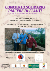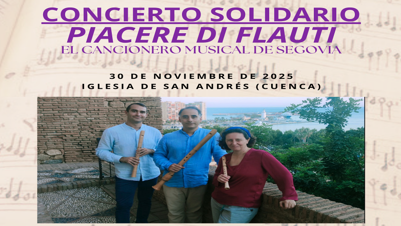 Concierto solidario de Piacere di Flauti el 30 de noviembre en San Andrés (Cuenca), a beneficio de AFYEDALCU, con música del Cancionero de Segovia.