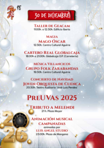 Cuenca ofrece el martes 30 de diciembre una completa jornada navideña con talleres infantiles, magia, villancicos, conciertos, Preuvas 2025 y animación musical en distintos puntos de la ciudad