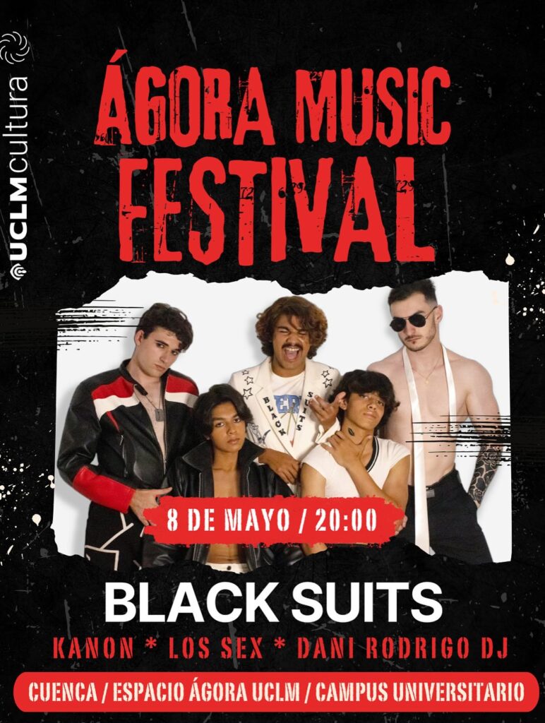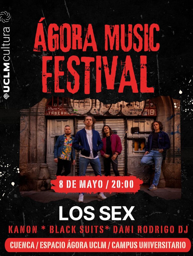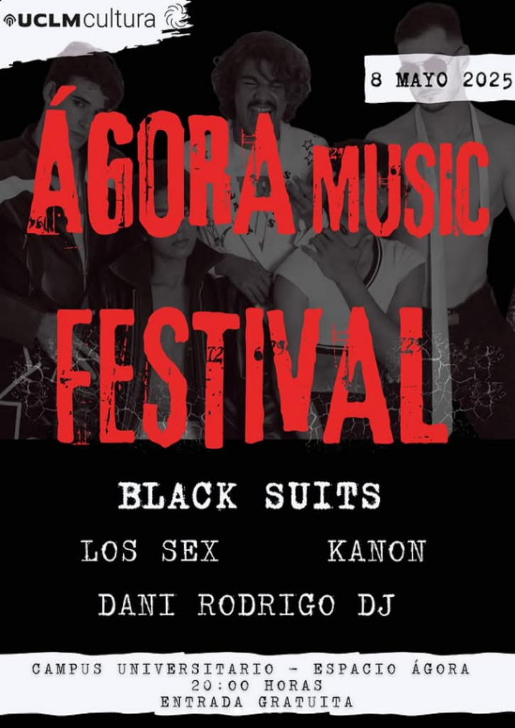 Ágora Music Festival Cuenca 2025: 8 mayo en el Campus UCLM. Black Suits, Los Sex, Kanon y DJ Dani Rodrigo tocarán gratis gracias al Patronato Gil de Albornoz.