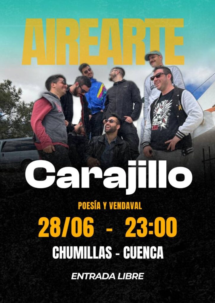 El Festival AireArte anima las calles de Chumillas este sábado 28 de junio con actividades creativas y concierto final de Carajillo. Entrada libre.