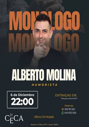 Alberto Molina llega a La Ceca el 6 de diciembre con un monólogo divertido. Entradas 10€ con consumición incluida. ¡Risas aseguradas en Cuenca!