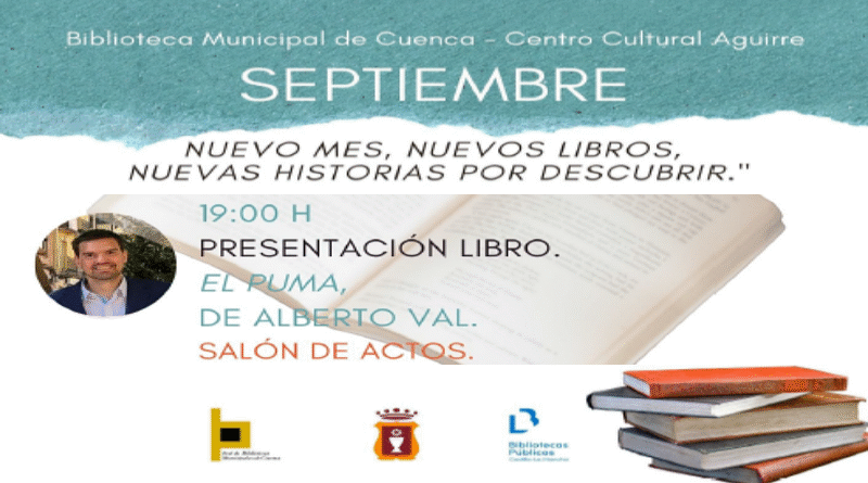El próximo miércoles 17 de septiembre de 2025, a las 19:00 horas, el Salón de Actos del Centro Cultural Aguirre de Cuenca acogerá la presentación de la última novela del escritor y periodista conquense Alberto Val, titulada El Puma. El acto tendrá lugar en la Biblioteca Municipal y supone la llegada de la segunda entrega de la serie protagonizada por la inspectora Guiomar Aguilera, iniciada con La perra (Destino, 2023).