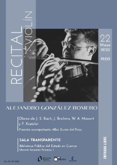 Recital de violín con Alejandro González Romero el 22 de mayo en la Biblioteca de Cuenca. Obras de Bach, Brahms, Mozart y Kreisler. Entrada libre