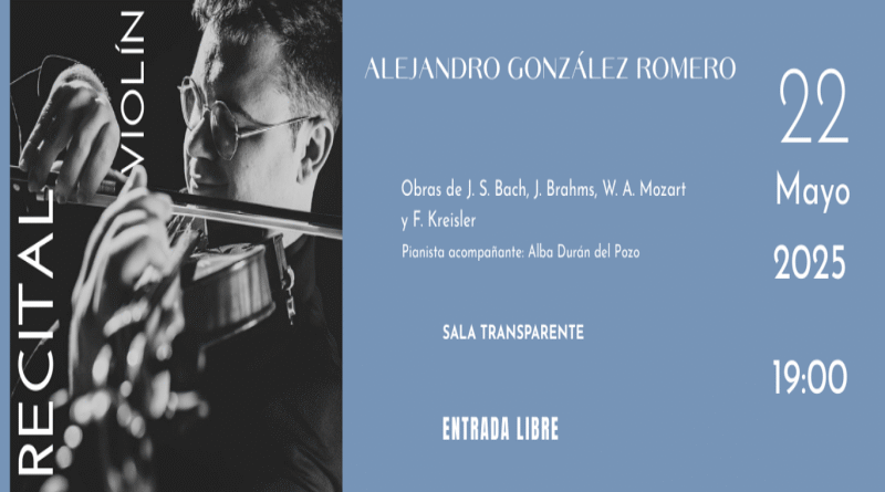 Recital de violín con Alejandro González Romero el 22 de mayo en la Biblioteca de Cuenca. Obras de Bach, Brahms, Mozart y Kreisler. Entrada libre