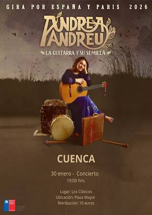 El Pub los Clásicos de Cuenca acoge el próximo 30 de enero a la destacada cantora y guitarrista Andrea Andreu, quien se presentará en Los Clásicos (Plaza Mayor) con su proyecto “La guitarra y su semilla”, una propuesta íntima y profundamente ligada a las raíces del canto tradicional y la guitarra folclórica. El concierto dará comienzo a las 19:00 horas y contará con entrada a 10 euros.
