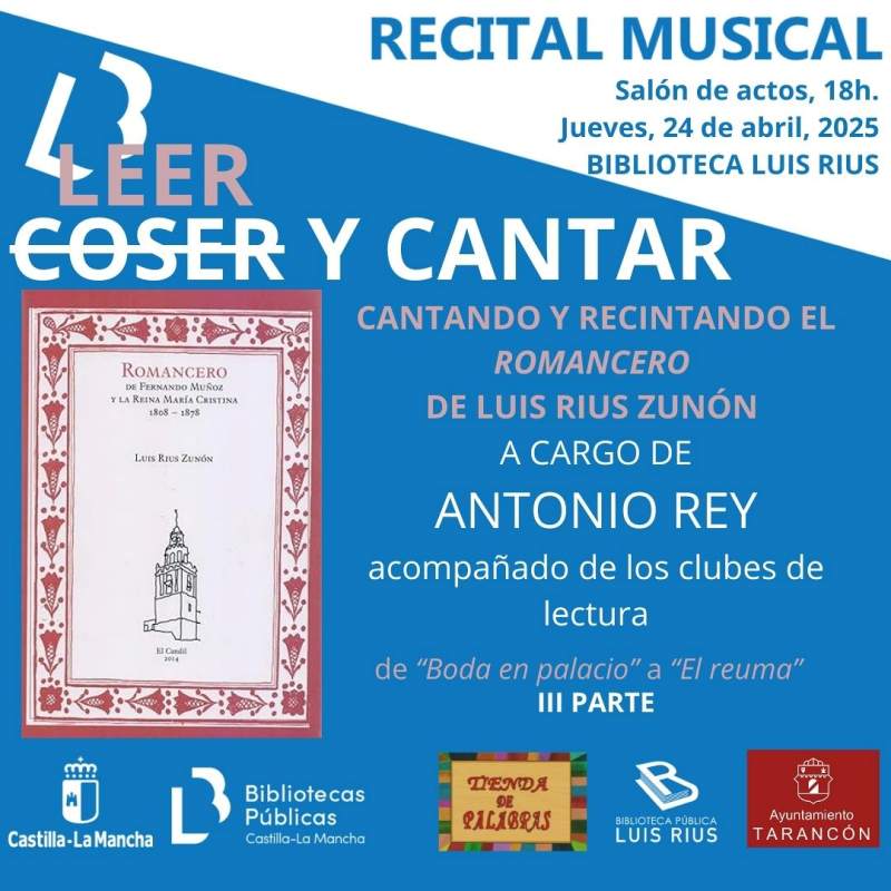 La Biblioteca Pública Luis Rius de Tarancón acogerá, el próximo el recital musical «Leer y Cantar: Cantando y Recitando el Romancero de Luis Rius Zunón» , un evento que pondrá en valor la obra del poeta taranconero.