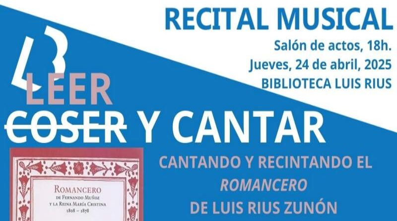 La Biblioteca Pública Luis Rius de Tarancón acogerá, el próximo el recital musical «Leer y Cantar: Cantando y Recitando el Romancero de Luis Rius Zunón» , un evento que pondrá en valor la obra del poeta taranconero.
