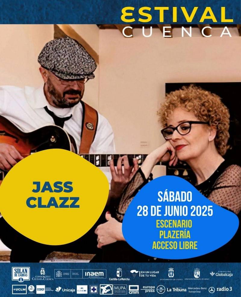 Abrirá la tarde noche el dúo conquense Jass Clazz, que integran la cantante Concha Marín y el guitarrista José Luis Roca. Este conjunto parte de temas propios y de un repertorio integrado por temas de autores clásicos y contemporáneos de bossa nova, samba y jazz.