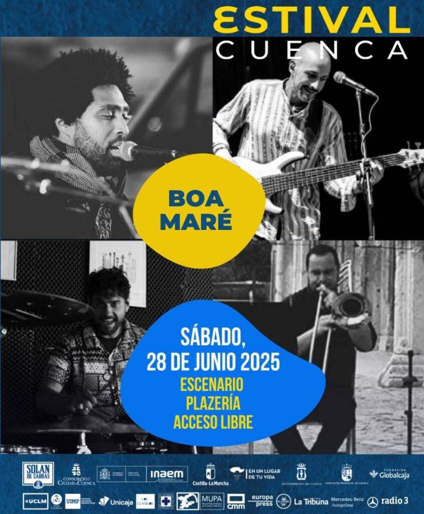 Una edición más y con el objetivo de dinamizar la zona del casco antiguo de Cuenca, Estival Cuenca ha programado un intenso fin de semana de propuestas musicales gratuitas para concluir el mes de junio como merece. Así, los conjuntos conquenses Boa Maré y Jass Clazz actuarán el sábado 28 de junio a partir de las 20 h. en el Escenario Plazería, que se ubicará en la terraza de este establecimiento y de Botánico en la zona de San Miguel. Y, como ya se apuntó, el domingo 29 de junio, a las 12:30 h., la joven cantante y compositora de Villar del Horno, Alicia Castillo, hará lo propio desde el balcón del Pub Los Clásicos.
