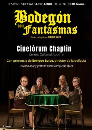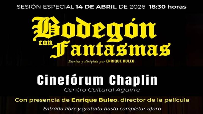 Una vez cerrada la programación de la temporada 2025-2026 del Cineclub Chaplin en su Cinefórum del Centro Cultural Aguirre, este martes día 14 de abril se celebrará una sesión especial con la proyección del largometraje Bodegón con fantasmas, rodado en la localidad conquense de Villanueva de la Jara y dirigido por Enrique Buleo.