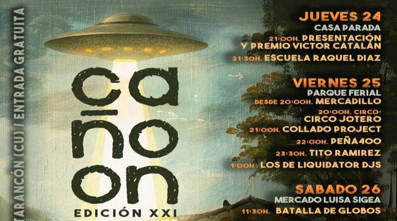 Tarancón volverá a convertirse en un referente cultural este verano con la celebración de la XXI edición del Caño-On Festival, que tendrá lugar los días 24, 25 y 26 de julio de 2025. Esta cita imprescindible para el público amante de la música en vivo, el arte de calle y la convivencia festiva, ofrecerá de nuevo todas sus actividades de manera gratuita, reafirmando su apuesta por la cultura accesible y abierta a todos los públicos.