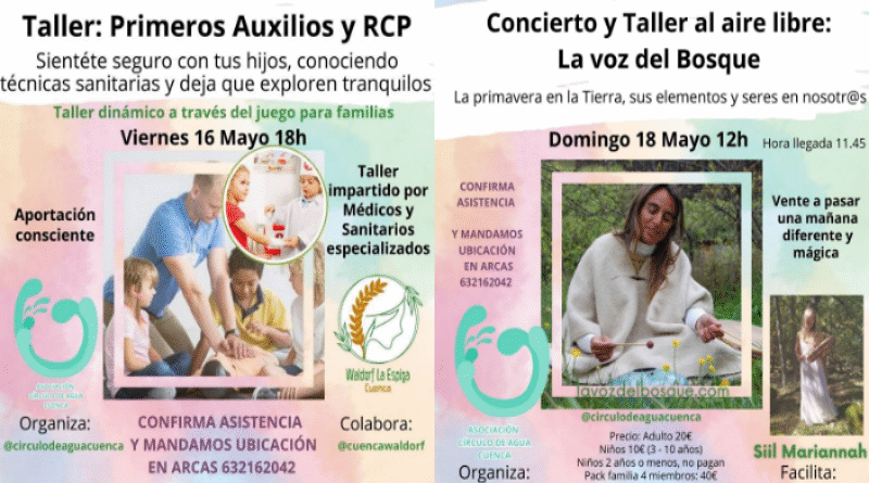 Dos actividades únicas en Cuenca: primeros auxilios en familia y un taller-concierto sanador en la naturaleza, organizadas por Círculo de Agua