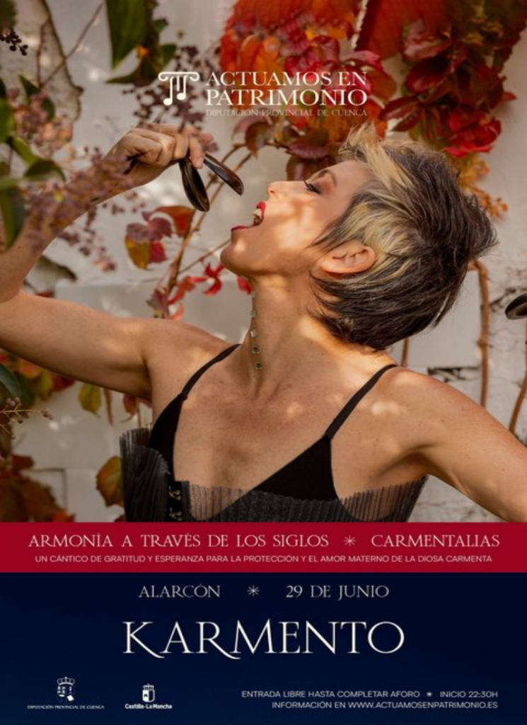Karmento es una artista manchega que cuenta historias atemporales a través de su música, que nace de la canción de autor y camina a través de la copla, el flamenco, la música étnica o las seguidillas manchegas. El 8 de mayo de 2020 salió publicado su nuevo disco ‘Este devenir’, un álbum rotundo y honesto, a medio camino entre el folclore y el pop. En esta gira Karmento va acompañada de su banda formada por una percusionista, una violinista y un guitarrista/teclista, con los que consigue conectar con el público gracias a un directo muy potente, emotivo y de gran calidad vocal y musical.