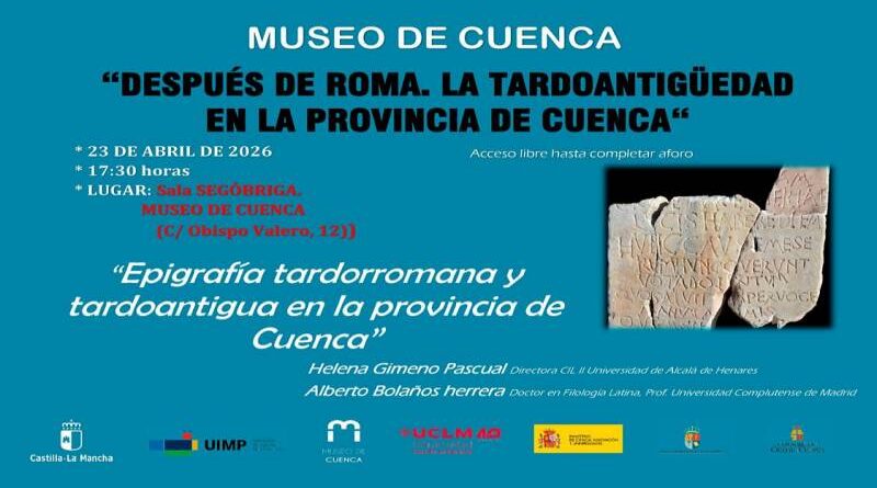 En esta ocasión, la Sala Segóbriga acogerá la conferencia titulada “Epigrafía tardorromana y tardoantigua en la provincia de Cuenca”, impartida por las especialistas Helena Gimeno Pascual y Alberto Bolaños Herrera.