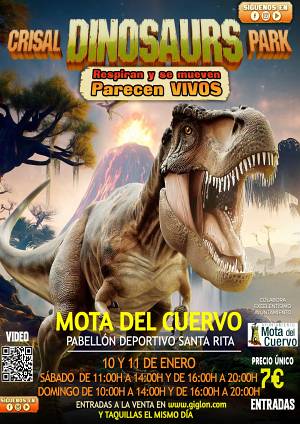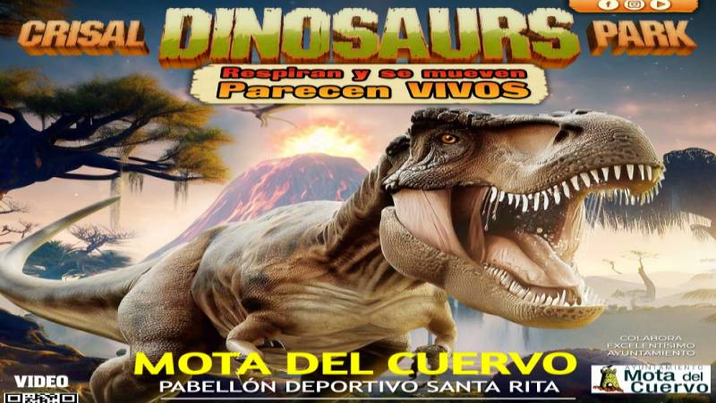 El increíble Crisal Dinosaurs Park se instalará en el Pabellón Deportivo Santa Rita en Mota del Cuervo los próximos 10 y 11 de enero. Este evento, único en la región, ofrece una oportunidad para acercarse a los dinosaurios de una forma como nunca antes, ya que no son estatuas: ¡respiran, se mueven y parecen vivos!