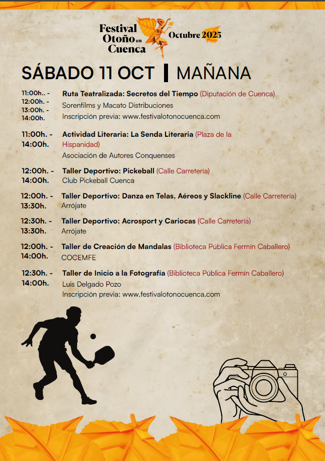 la Ruta Teatralizada “Secretos del Tiempo”, a cargo de Sorenfilms y Macato Distribuciones, recorrerá la historia local con un toque escénico (inscripción previa en festivalotonocuenca.com).