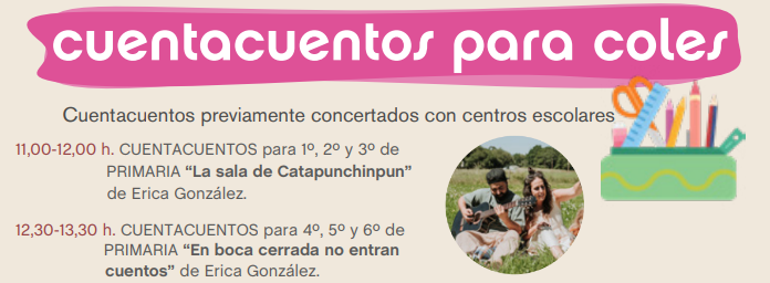 10,30-13,30. Actividades con escolares. Dos narraciones de Erica González y talleres.