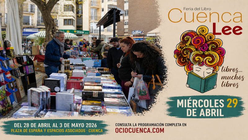 La Feria del Libro de Cuenca, Cuenca Lee 2026, continúa este miércoles 29 de abril con una jornada marcada por la presencia de autores destacados y una programación variada para todos los públicos.