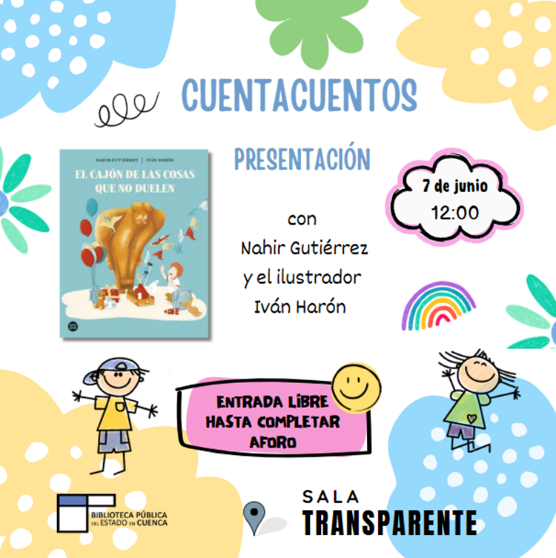 La Biblioteca Pública del Estado en Cuenca ‘Fermín Caballero’ acoge este viernes 7 de junio a las 12:00 horas un nuevo cuentacuentos con motivo de la presentación del libro infantil El cajón de las cosas que no duelen, obra de la escritora Nahir Gutiérrez y el ilustrador Iván Harón.