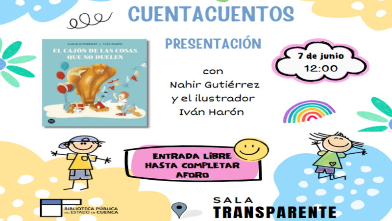La Biblioteca Pública del Estado en Cuenca ‘Fermín Caballero’ acoge este viernes 7 de junio a las 12:00 horas un nuevo cuentacuentos con motivo de la presentación del libro infantil El cajón de las cosas que no duelen, obra de la escritora Nahir Gutiérrez y el ilustrador Iván Harón.