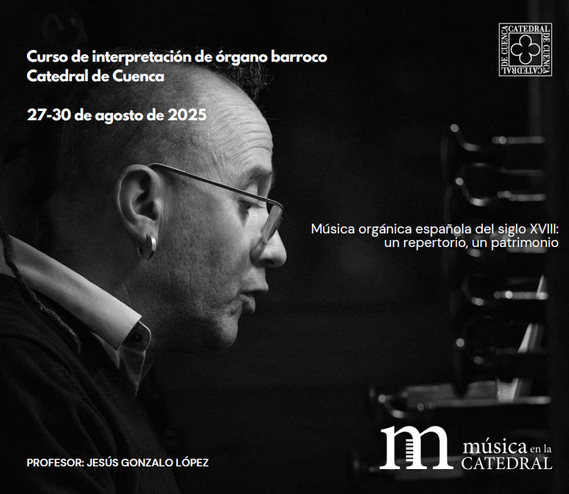 Del 27 al 30 de agosto de 2025, la Catedral de Cuenca acogerá el Curso de interpretación de órgano barroco, enmarcado en el ciclo Música en la Catedral de Cuenca. Esta edición, impartida por el maestro Jesús Gonzalo López, se presenta bajo el título “Música orgánica española del siglo XVIII: un repertorio, un patrimonio”, y propone un acercamiento histórico y artístico a la riqueza del órgano ibérico del periodo ilustrado.