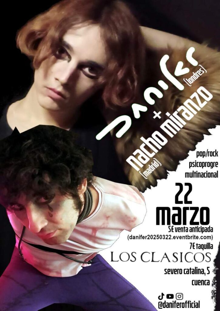 El próximo 22 de marzo, Cuenca vibrará con los sonidos de Danifer, un nuevo artista completamente independiente afincado en Londres, Reino Unido que trae nuevos colores para el pop alternativo engarzados con espíritus psicodélicos y progresivos como parte de su «microgira ibérica».