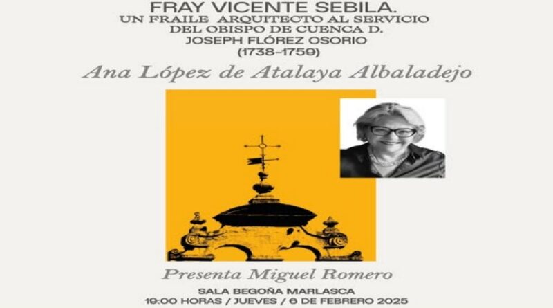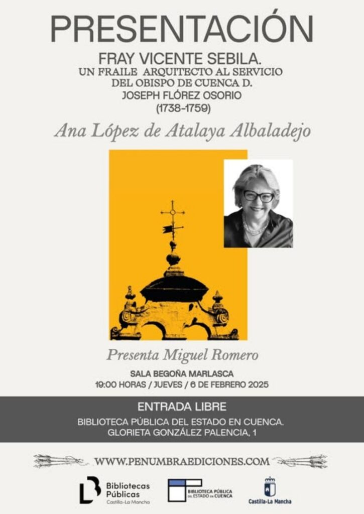 La Biblioteca Pública del Estado en Cuenca servirá de marco para la presentación del libro ‘Fray Vicente Sebila. Un fraile arquitecto al servicio del Obispo de Cuenca D. Joseph Flórez Osorio (1738-1759)‘, escrito por la historiadora Ana López de Atalaya Albaladejo. El evento tendrá lugar el jueves 6 de febrero de 2025 a las 19:00 h en la Sala Begoña Marlasca de la biblioteca.