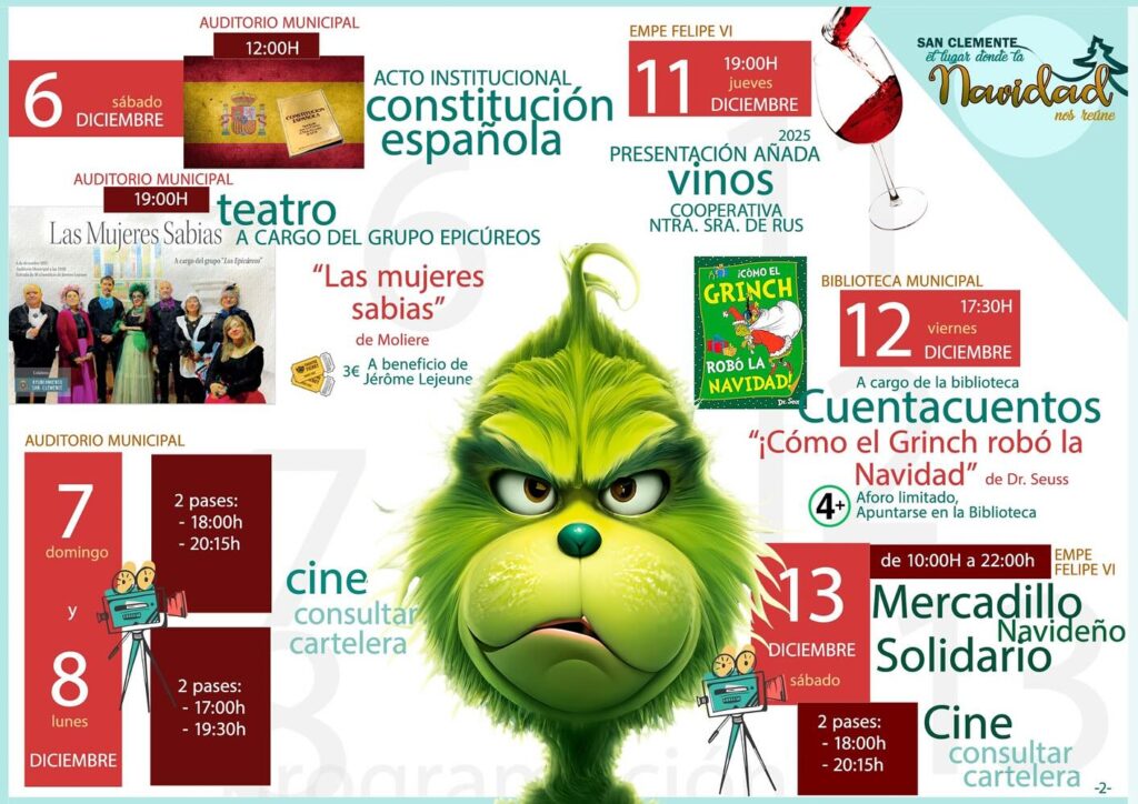 San Clemente se prepara para vivir unas Navidades llenas de tradición, cultura, solidaridad y diversión con una amplia programación que se desarrollará del 1 de diciembre al 6 de enero, reuniendo a asociaciones, centros educativos, colectivos culturales, comercios y a toda la ciudadanía en torno al lema “San Clemente, el lugar donde la Navidad nos reúne”.