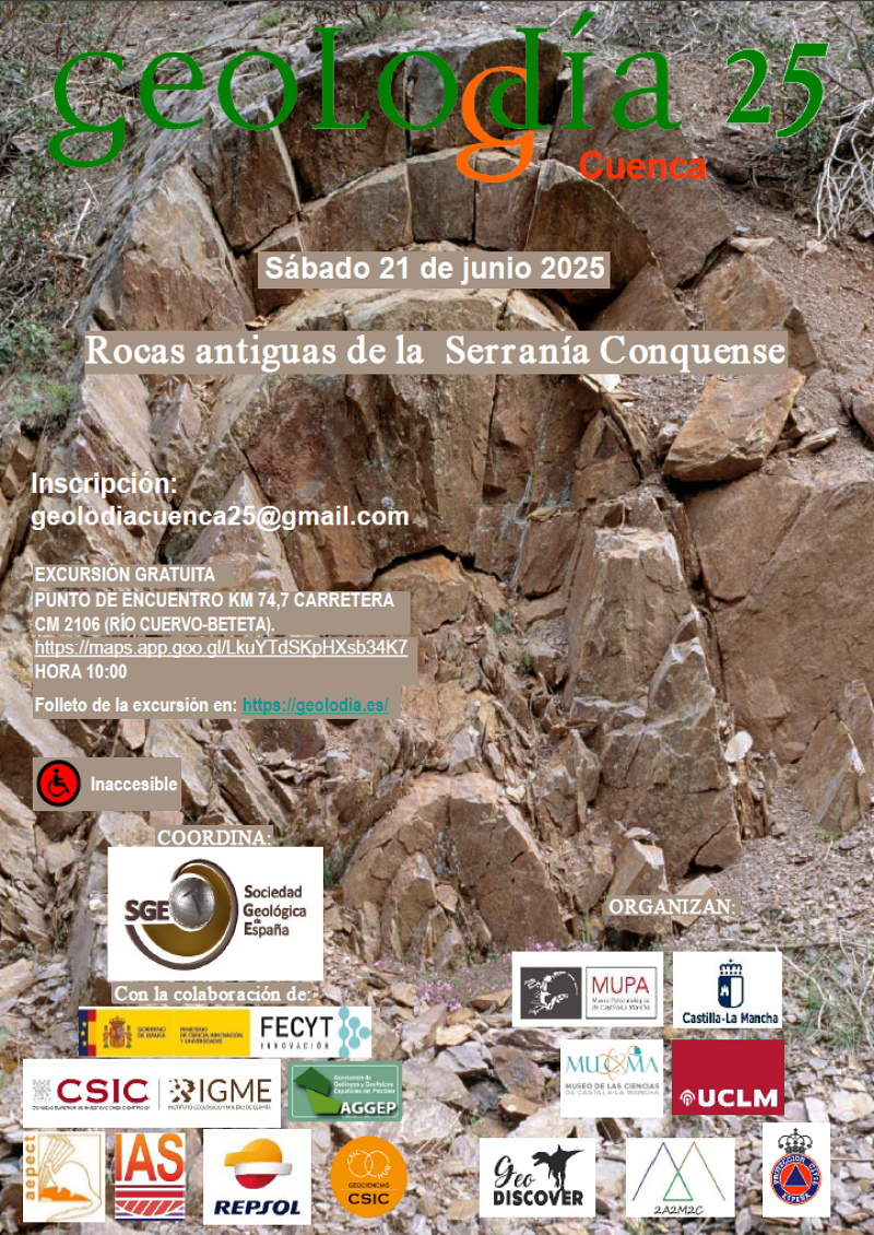 El día 21 de junio (sábado) se celebrará el Geolodía de Cuenca suspendido el pasado 10 de mayo por la alerta meteorológica naranja en la Serranía. La inscripción se realizará en el siguiente correo electrónico: geolodiacuenca25@gmail.com