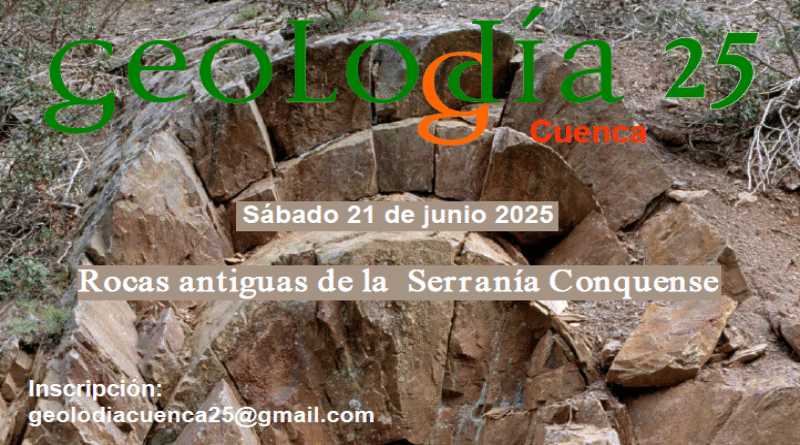 El día 21 de junio (sábado) se celebrará el Geolodía de Cuenca suspendido el pasado 10 de mayo por la alerta meteorológica naranja en la Serranía. La inscripción se realizará en el siguiente correo electrónico: geolodiacuenca25@gmail.com
