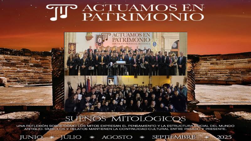 La primera edición de verano del ciclo Actuamos en Patrimonio en Segóbriga presenta este sábado 21 de junio, un espectáculo musical en directo protagonizado por la Asociación Musical Nuestra Señora del Rosario de El Provencio y la Asociación Musico‑Cultural Santa Cecilia de Almonacid del Marquesado. Ambas formaciones subirán al emblemático Teatro Romano (apertura a las 21:00 h, inicio a las 22:00 h) para interpretar al unísono un repertorio seleccionado que conecta con la historia del mismo escenario donde siglos atrás sonaron las voces de la Antigüedad