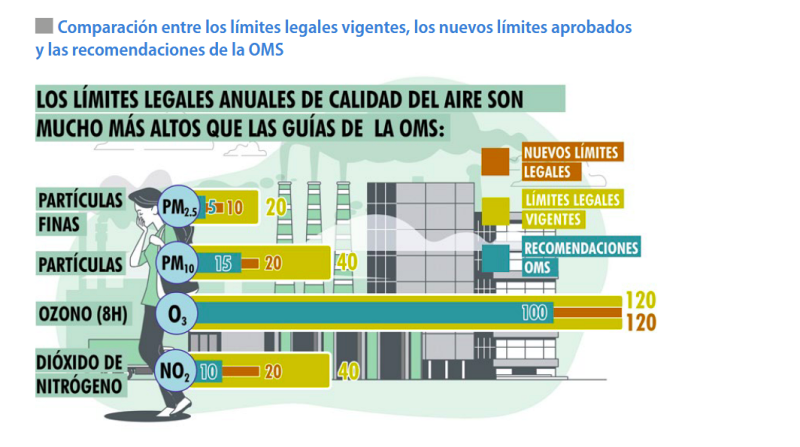 Como consecuencia, y pese a la significativa mejora de la calidad del aire en los últimos años, toda la población de Castilla-La Mancha siguió respirando en 2024 un aire perjudicial para la salud según las recomendaciones de la OMS y los nuevos límites legales aprobados para 2030 por la Unión Europea, siendo 196.000 los habitantes (el 9 % de la población) de la única zona donde todavía se superaron el obsoleto objetivo legal para la protección de la salud en el trienio 2022-2024, la Aglomeración de Guadalajara.