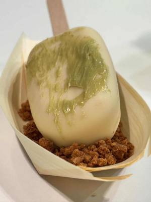 ● Como cierre, los chefs sorprendieron con un postre poco convencional: helado de moras silvestres, speculoos y cobertura de chocolate blanco de la Abadía de Jábaga, con ajo negro y nocilla de pistacho de La Lola (Villacañas), demostrando la capacidad del ajo negro para integrarse con naturalidad en elaboraciones dulces.