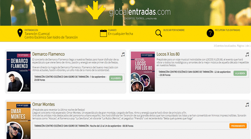 El día 7 de septiembre actuará en Tarancón el artista Demarco Flamenco, y el día 12 habrá un Festival de ‘Los 80’, con Rafa Sánchez, exintegrante del grupo La Unión, el dúo Amistades Peligrosas y DJ Marta; en ambos casos el precio por entrada será de 10 euros. Ya el día 13 de septiembre, por un precio de 20 euros, está previsto el concierto de Omar Montes.