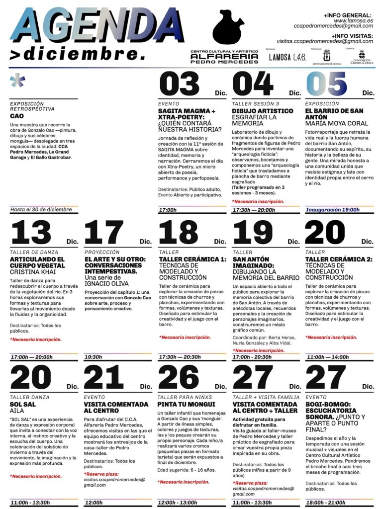 Descubre la programación de diciembre 2025 del Centro Pedro Mercedes: exposiciones, talleres, visitas guiadas y actividades para todos los públicos