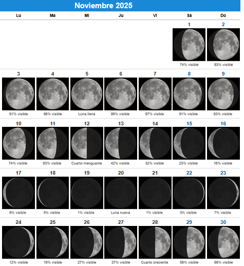 Entre los eventos más esperados destacan las Leónidas, una lluvia de meteoros visible entre el 6 y el 30 de noviembre, con su máximo alrededor del día 17. Se trata de meteoros especialmente veloces, que alcanzan los 71 km/s, y este año contarán con la ventaja de una Luna poco interferente, ideal para su observación.