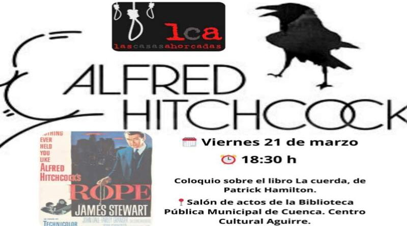 El club de lectura de Las Casas Ahorcadas continúa este viernes con su ciclo de adaptaciones de Alfred Hitchcock, que en esta ocasión comparará la película La Soga, una de las obras maestras del genio del suspense, con la obra de teatro en la que se inspira, La Cuerda de Patrick Hamilton, publicada en 1929.