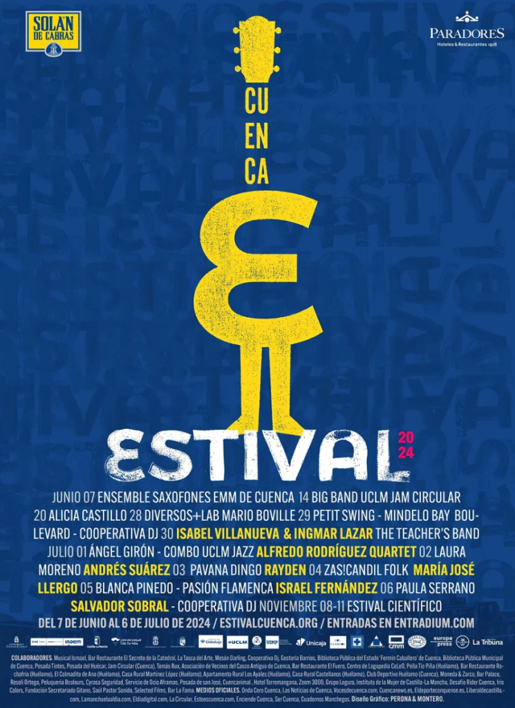 Isabel Villanueva, Alfredo Rodríguez Quartet, Andrés Suárez, Rayden, María José Llergo, Israel Fernández y el cantautor ganador de Eurovisión Salvador Sobral; grandes nombres del panorama internacional de la música unidos a lo mejor del talento conquense como Paula Serrano, ¡Zas! Candil Folk, Pavana Dingo, Laura Moreno, Pasión Flamenca… además de una extensa programación que llenará de música y talleres los últimos días de junio y la primera semana de julio y que cerrará en noviembre, con el V Encuentro Internacional de Docentes de la música y las XIII Jornadas de Didáctica de la Música y Musicología.
