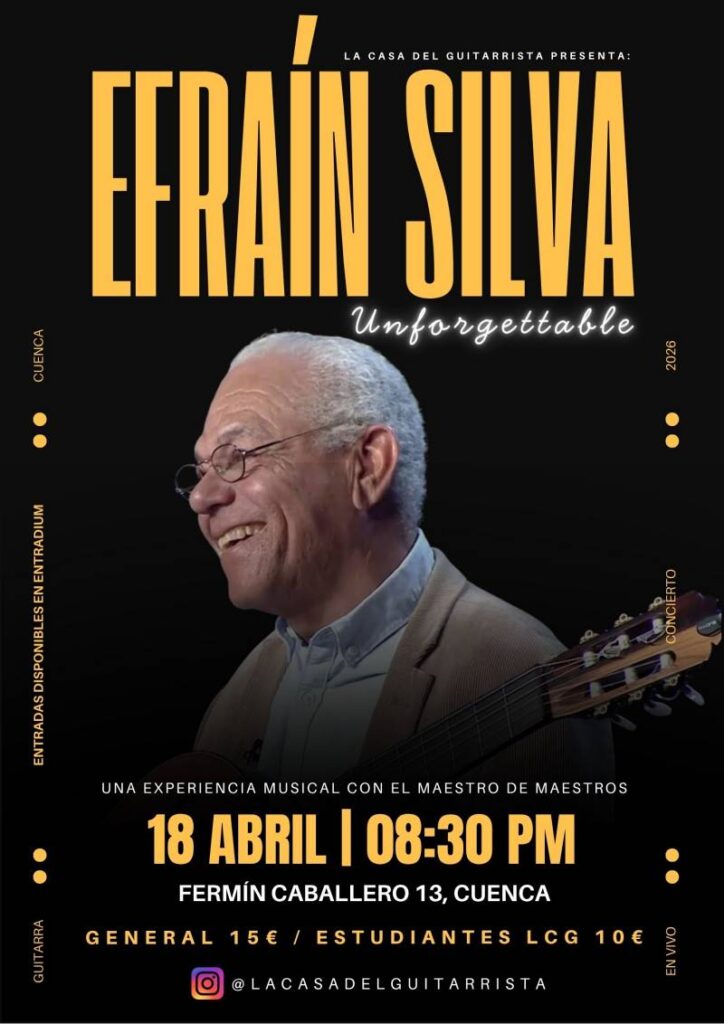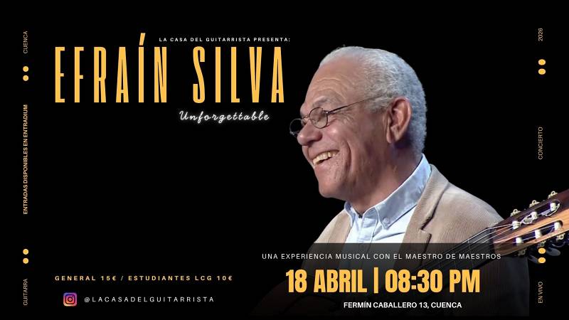 Cuenca se prepara para vivir una de las citas musicales más especiales del año. El próximo 18 de abril a las 20:30 horas, la ciudad acogerá el esperado concierto del reconocido guitarrista internacional Efraín Silva, quien presentará su espectáculo “Unforgettable” en un formato íntimo y lleno de emoción.