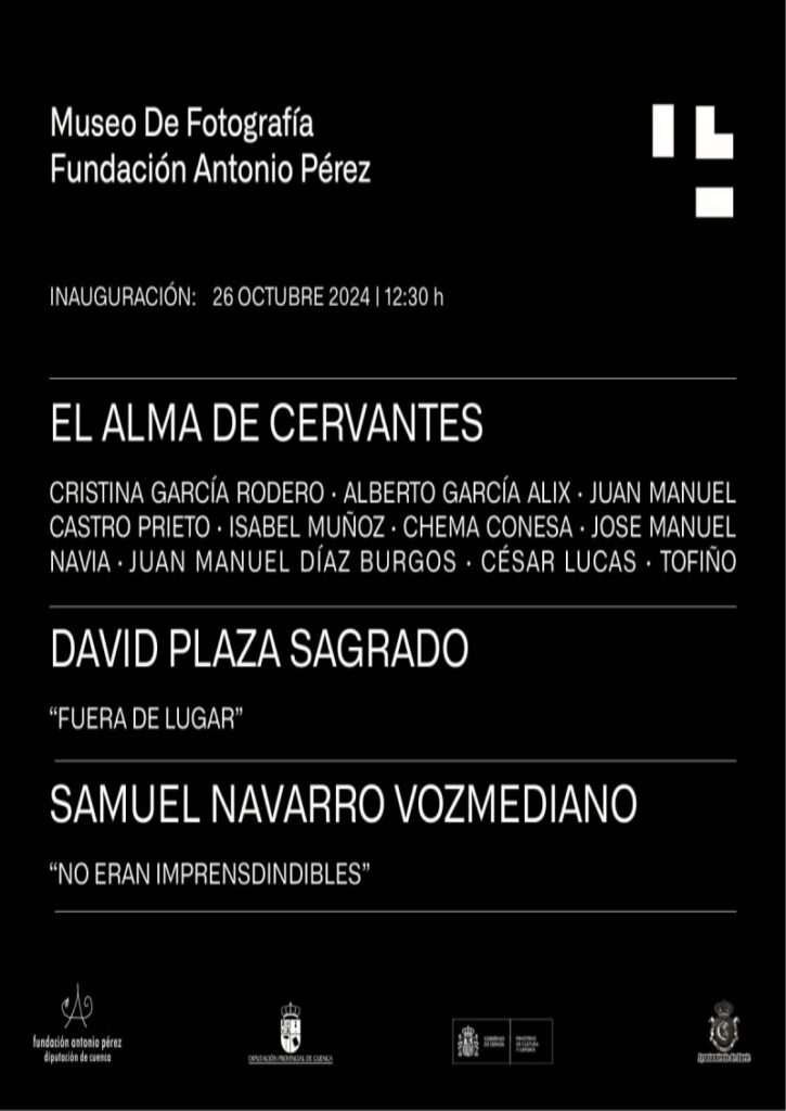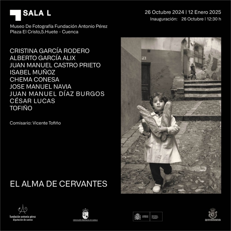 La exposición “El alma de Cervantes, se presenta en la Sala L del Museo de Fotografía y está comisariada por el fotógrafo conquense Vicente López Tofiño. En ella podremos conocer la visión particular del universo cervantino a través de la mirada de algunos de los fotógrafos más premiados de España: Cristina García Rodero, Alberto García-Alíx, Juan Manuel Castro Prieto, José Manuel Navia, Isabel Muñoz, César Lucas, Juan Manuel Díaz Burgos, Chema Conesa , y el propio Vicente López Tofiño.